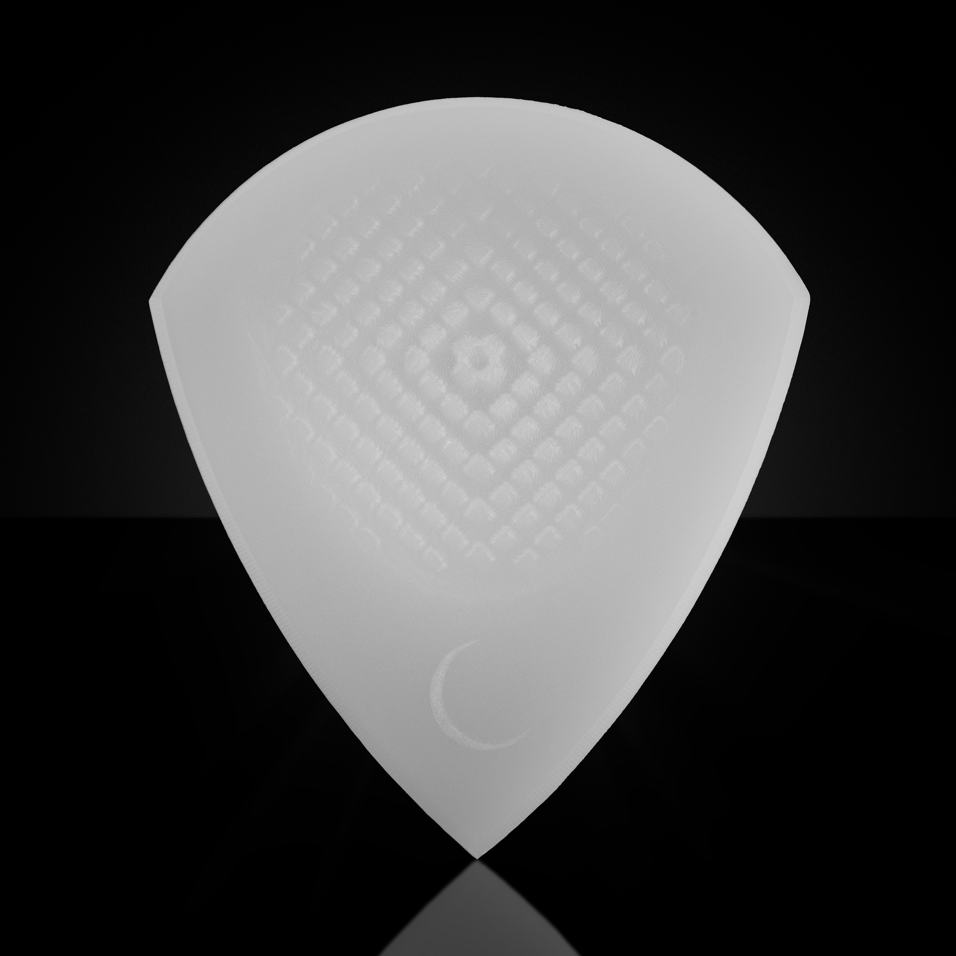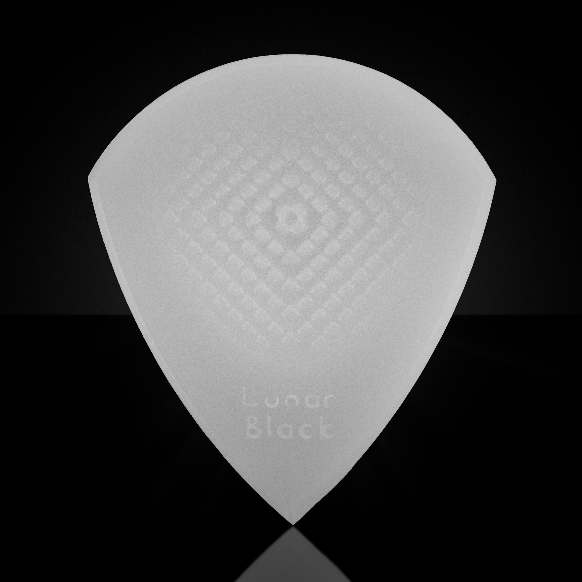 All of these features have been machined into a high quality thermoplastic (Acetal Homopolymer) to produce a pick imbued with low friction and long life. Both color options (Black or White) are Acetal Homopolymer (aka Delrin) and will perform exactly the same.