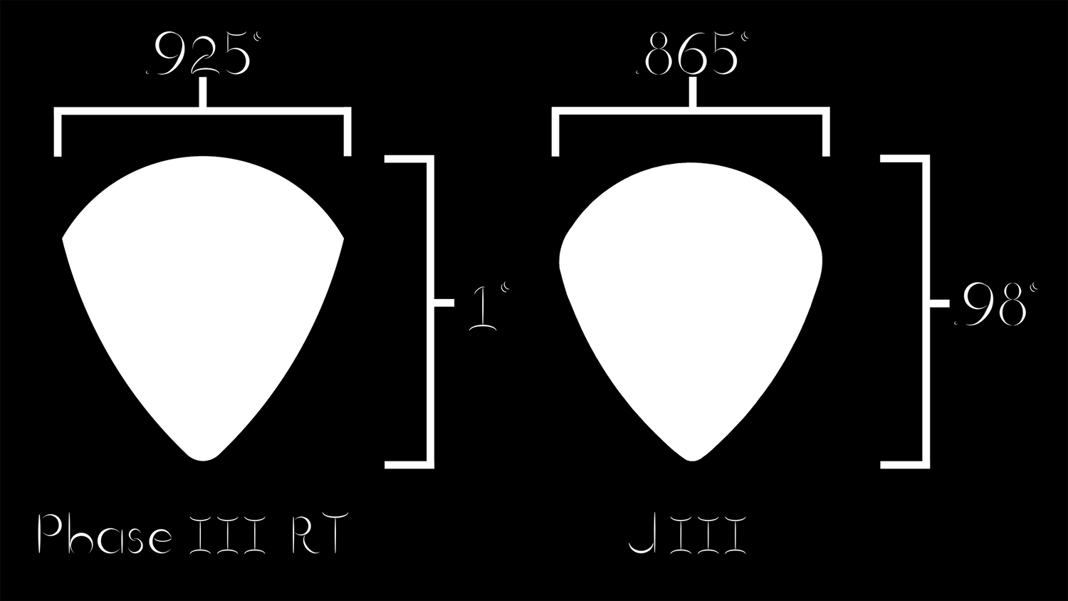 A familiar size paired with innovative shape and feel, the Phase III RT (Round Tip) is the progression of classic design. The smaller form factor combined with a radiused tip allows for a more traditional feel, but with all of the features of the Phase III. The 45° knife edge profile immediately cuts deep into the strings for a fast, articulate attack. Both sides of the Phase III RT body employ an ergonomic scallop in which the tips of the finger and thumb rest in. The surface of these scallops are lined with teeth like opposing grips that keep the Phase III RT exactly where you want it.